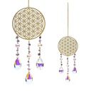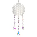 Attrape-soleil Fleur de Vie en métal argenté avec améthyste et cristal, pour des reflets scintillants. Idéal pour une touche spirituelle et décorative.