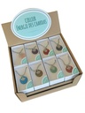 Offrez-vous des séances de lithothérapie avec ces 24 mélanges de 5 pierres triées sur le volet, accompagnés d'un présentoir gratuit et de leurs bienfaits en anglais.