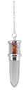 Découvrez la beauté de cette pendule en cristal de roche et cornaline montée sur chaîne en métal argenté de 18 cm, avec un diamètre de 1,4 cm et une hauteur de 3,5 à 4,5 cm.