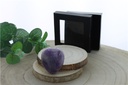 Découvrez l'Améthyste, pierre précieuse qui apaise, stimule l'imagination et renforce l'intuition dans un élégant cœur conditionné dans une boîte noire avec fenêtre.