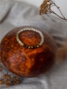 Découvrez la Bougie Abondance étoilée Omsaé : un parfum épicé de cannelle et agrume, allié aux énergies de l'agate mousse et citrine pour attirer prospérité et harmonie.